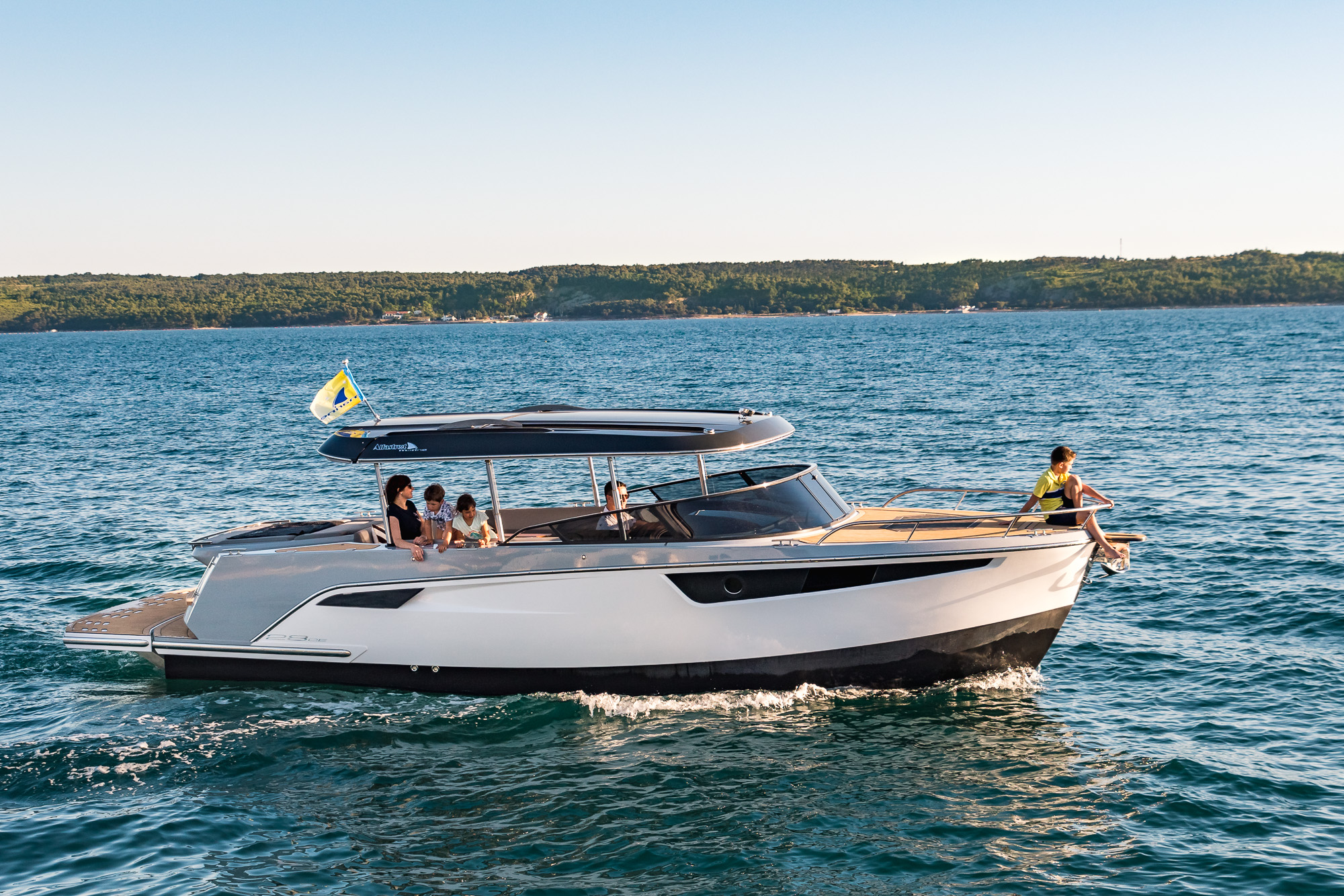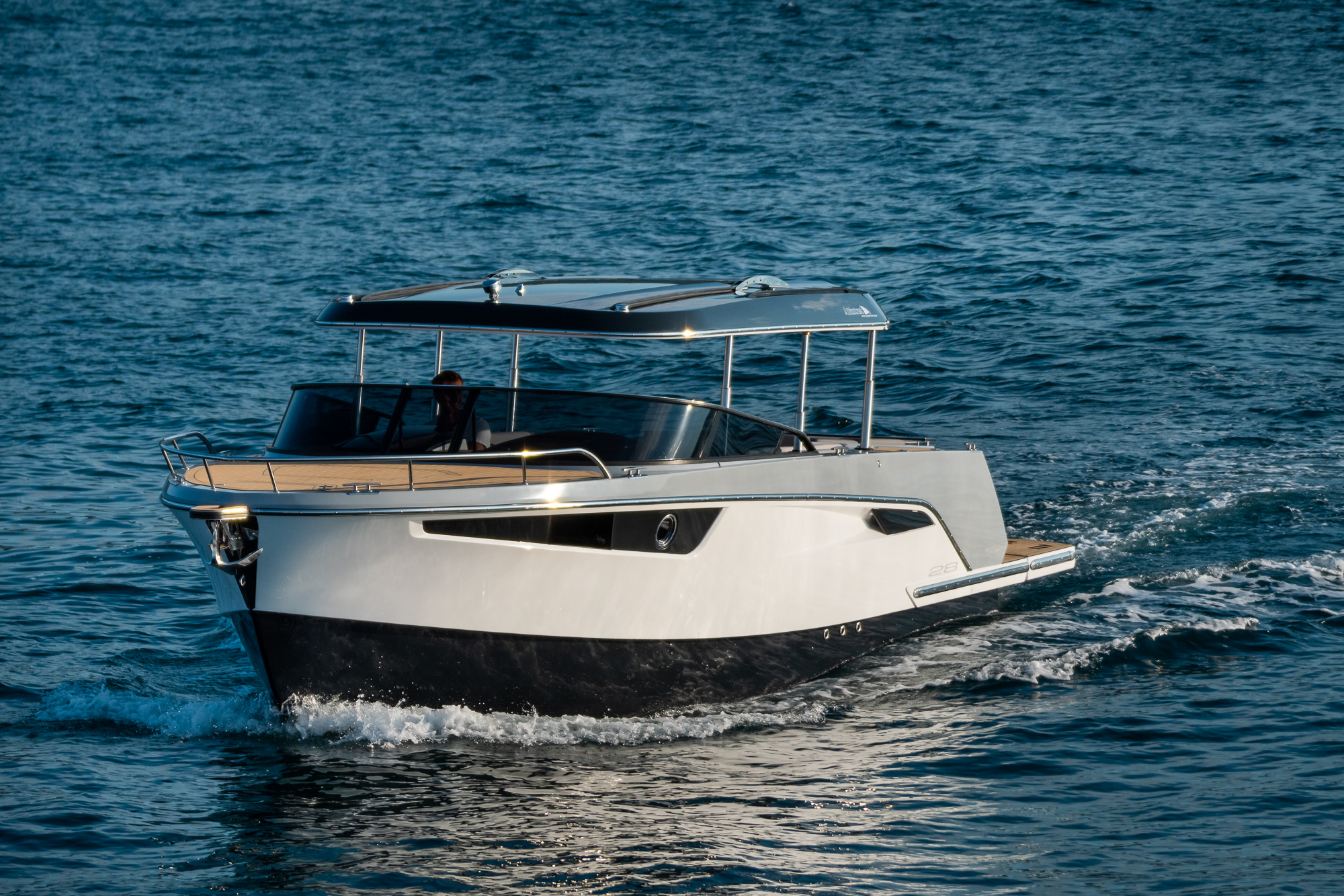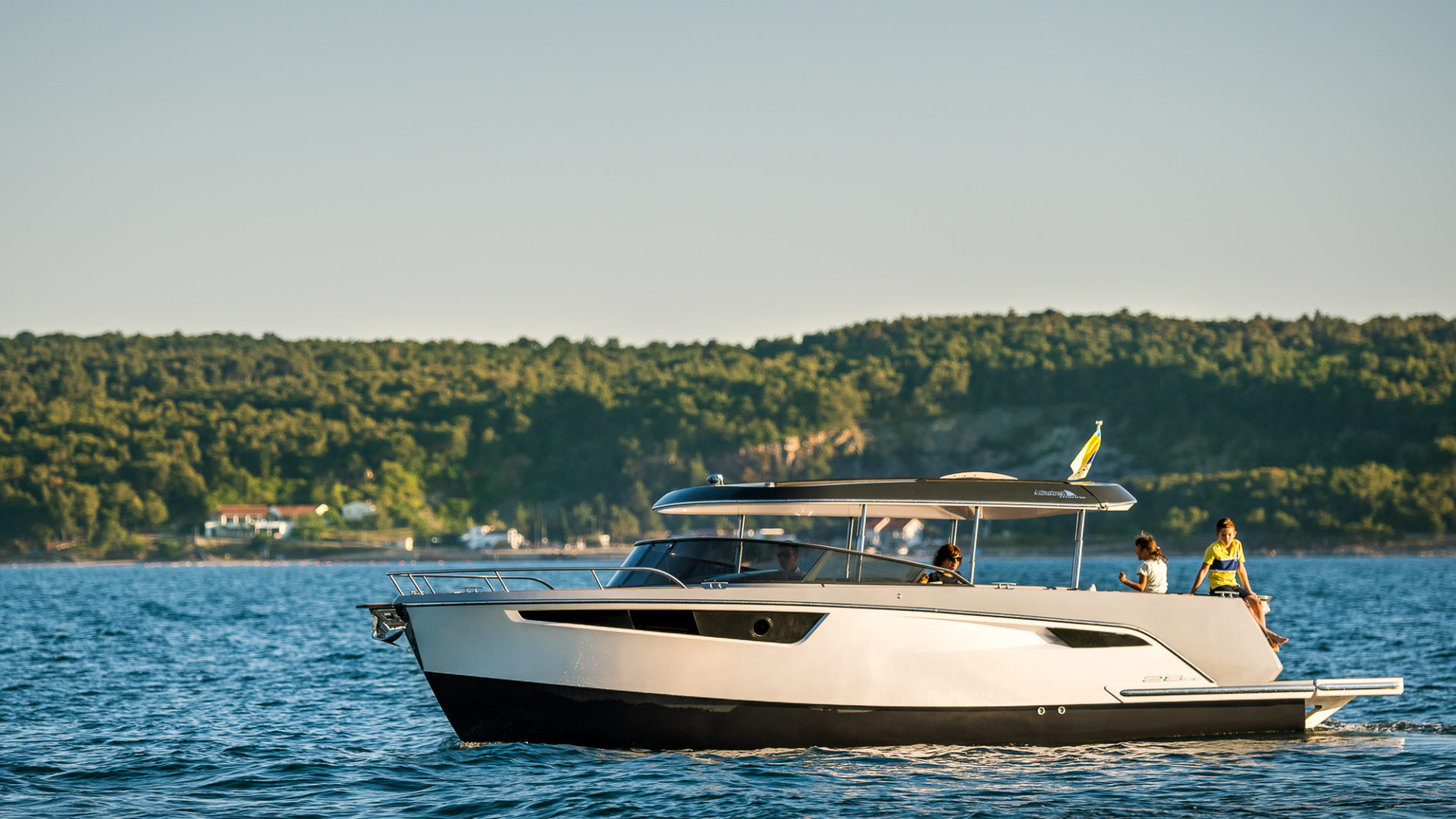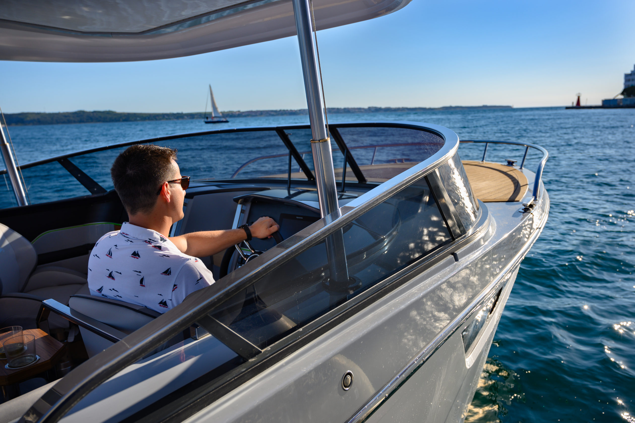 This model offers the most spacious cabin with a comfortable king size bed, a separate small bathroom and a practical closet. Access from the cockpit is easy and secure for maximum comfort and movement around the cabin. The elegant, blacked-out side windows offer great expansive views and provide daylight illumination. Attention to detail is evident throughout and you will feel right at home enjoying the night.