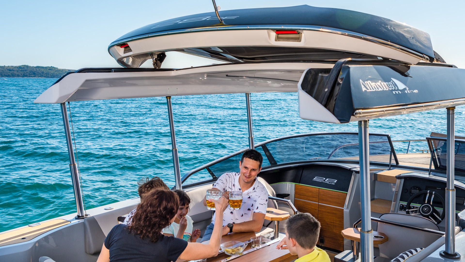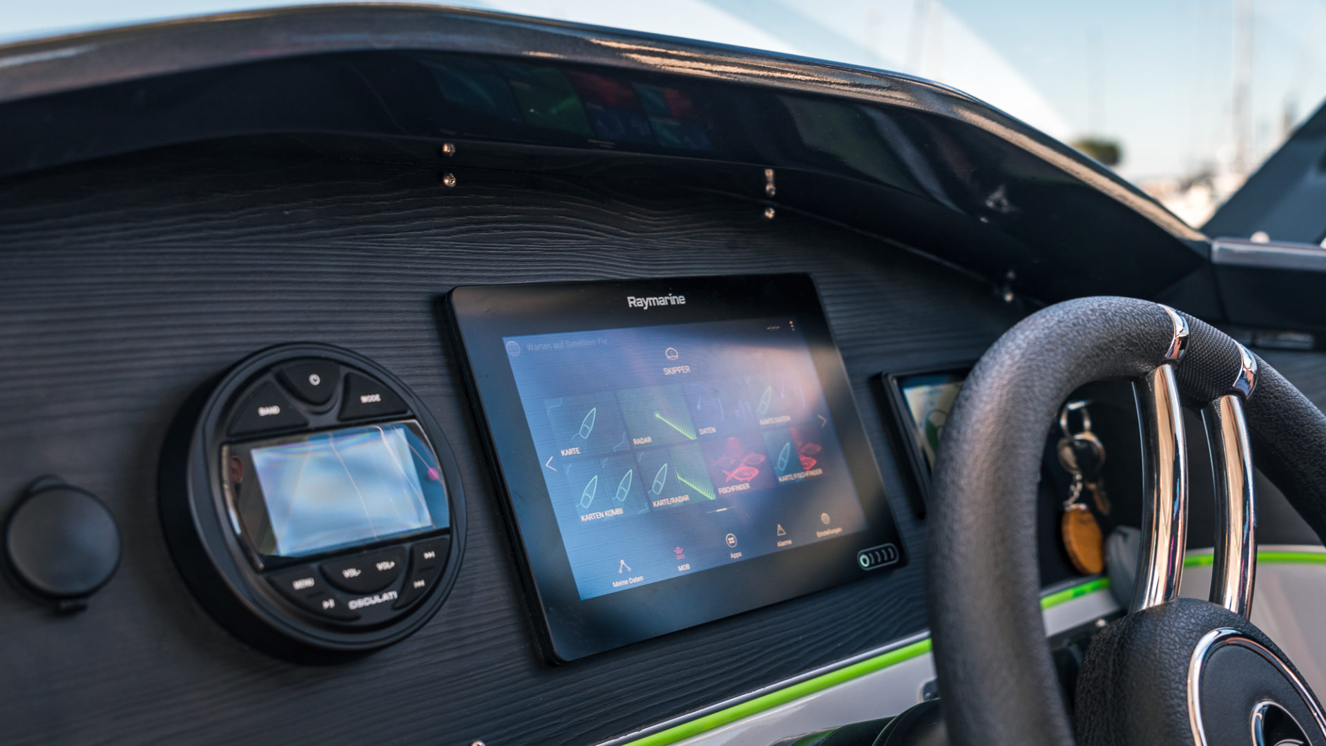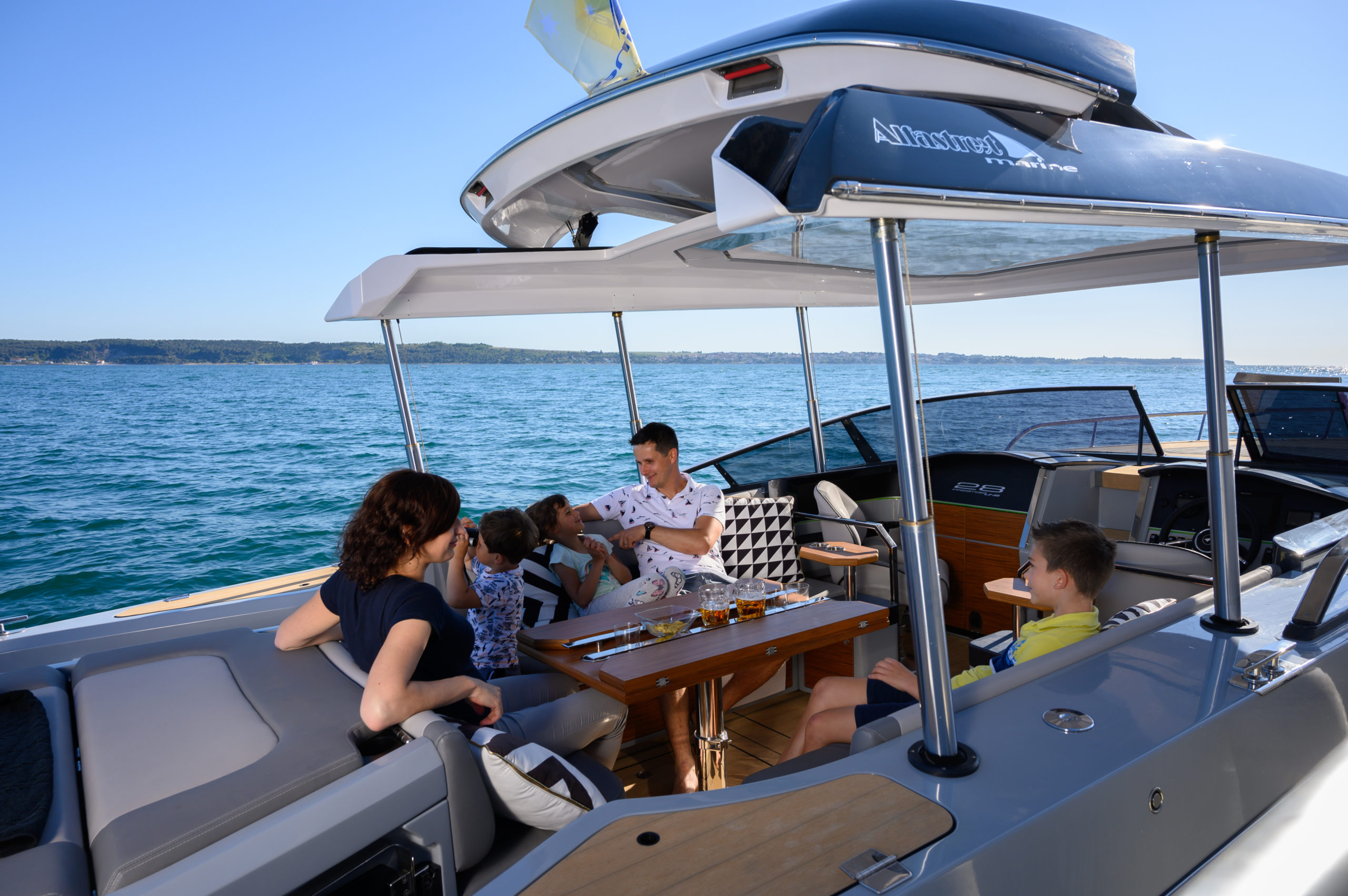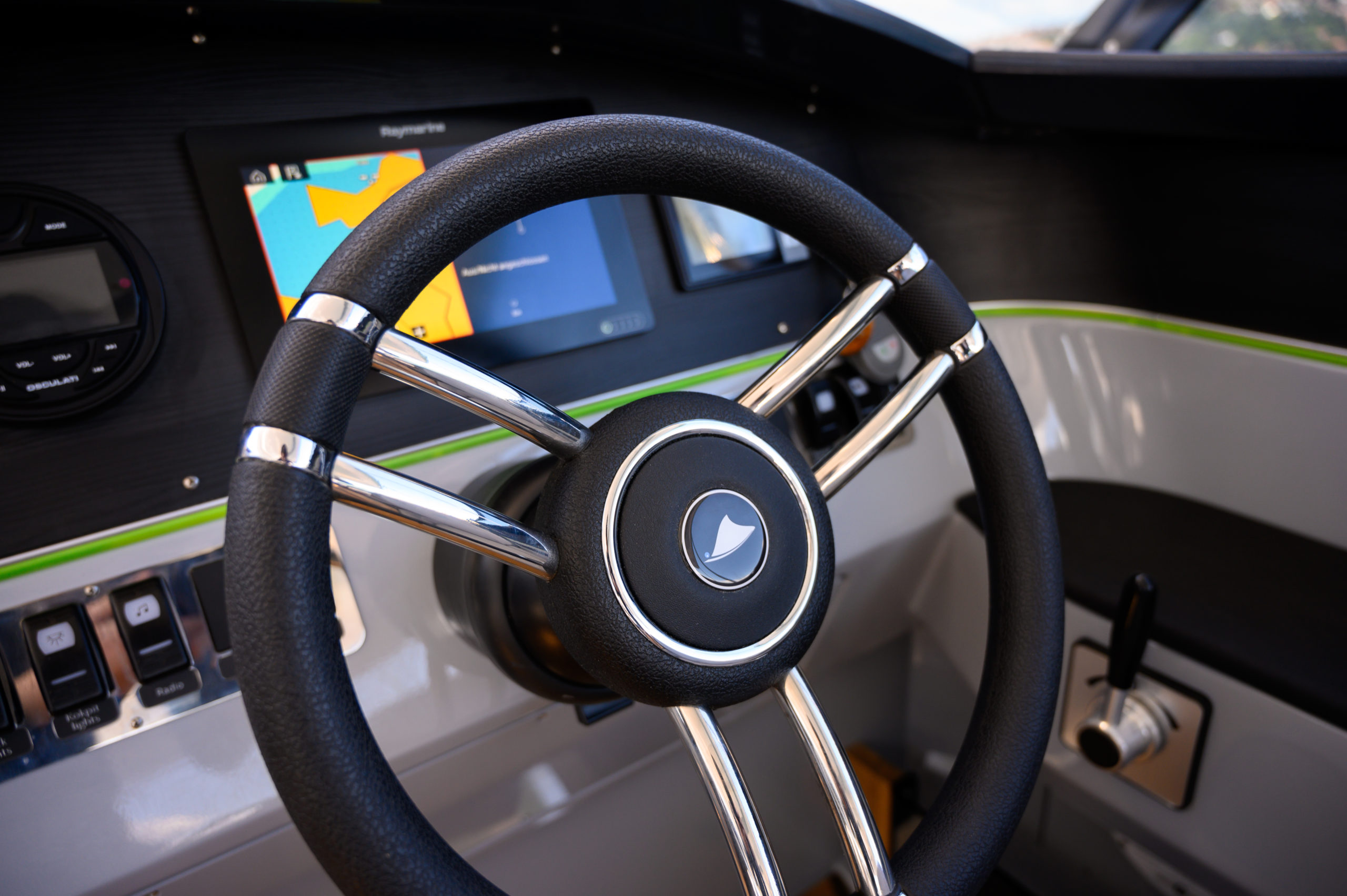 Certainly the 28's front console is something not to be missed, with all the custom detailing to make you feel like you're in a convertible. The well thought out positioning of all the instruments on the wooden inserts, the padded sides in the premium marine upholstery and the indirect lighting make the 28ft model a recognizable, timeless and appealing vessel.