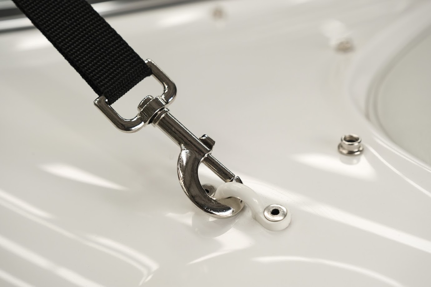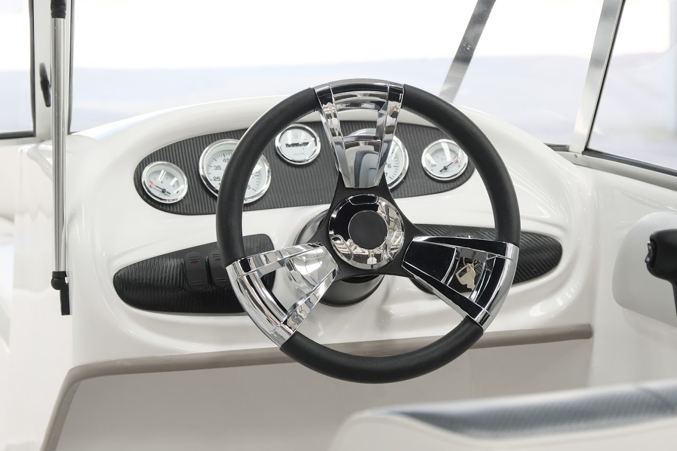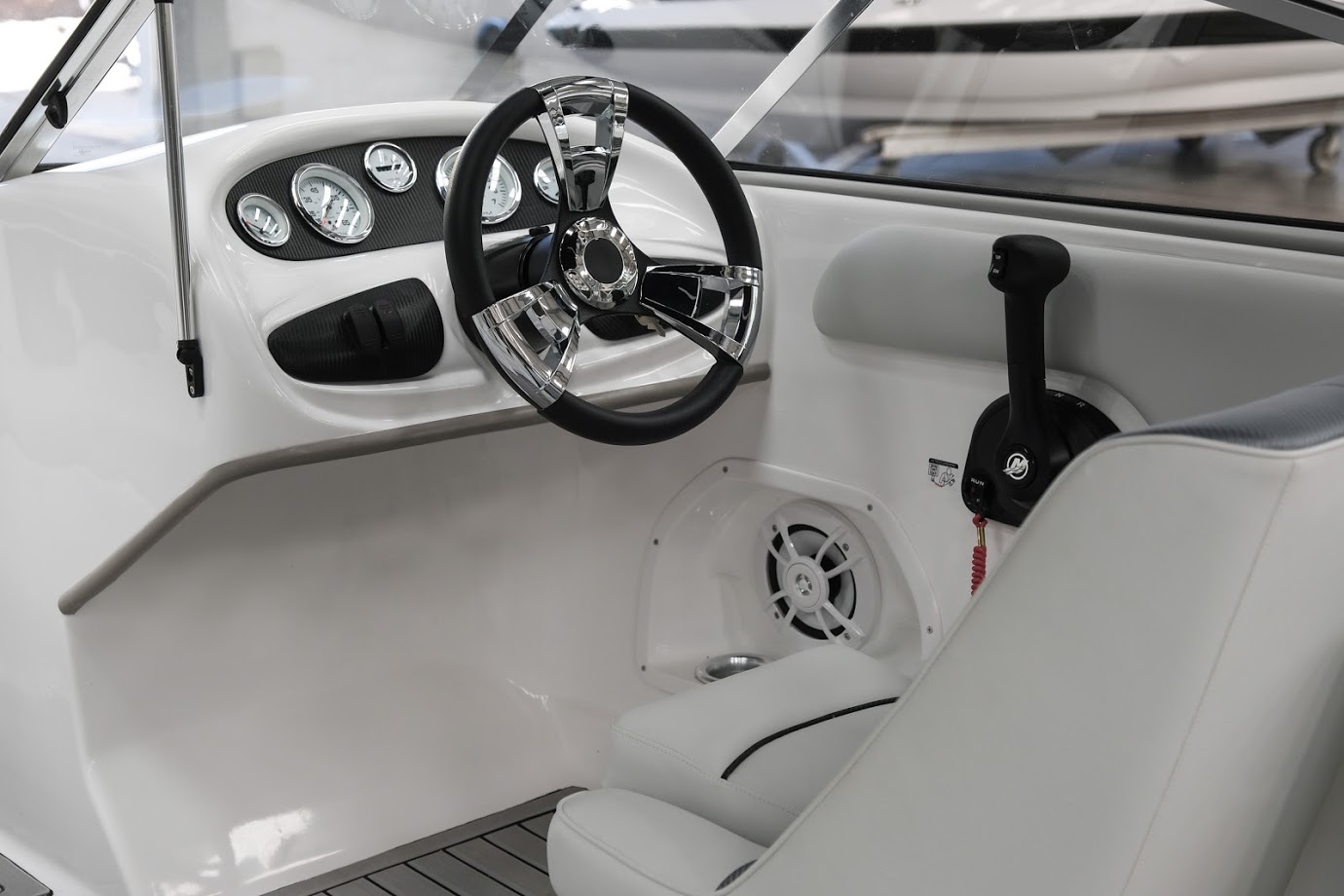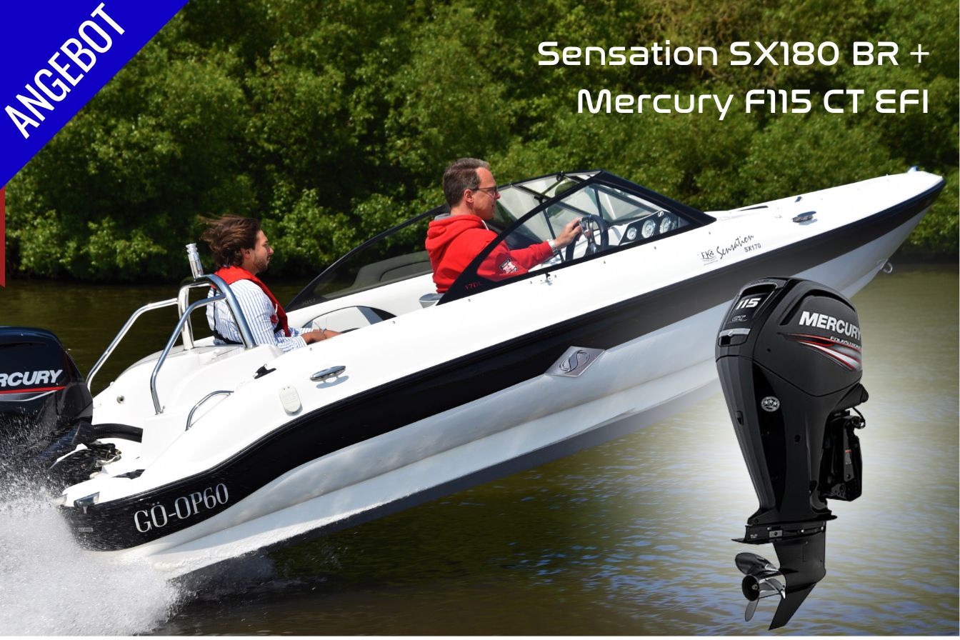 The Sensation SX180, our entry into the Sensation sports boat world. A sleek and powerful sports boat with dynamic handling characteristics and extensive equipment. Like all Sensation boats, one of the smallest boats also has a comfortable bow area, a wide hull shape in the bow area, a bathing ladder, a small bathing platform, L-shaped bench seat in the middle section, integrated cup holders, Boss radio with Bluetooth and speakers, as well as a clearly laid out cockpit.