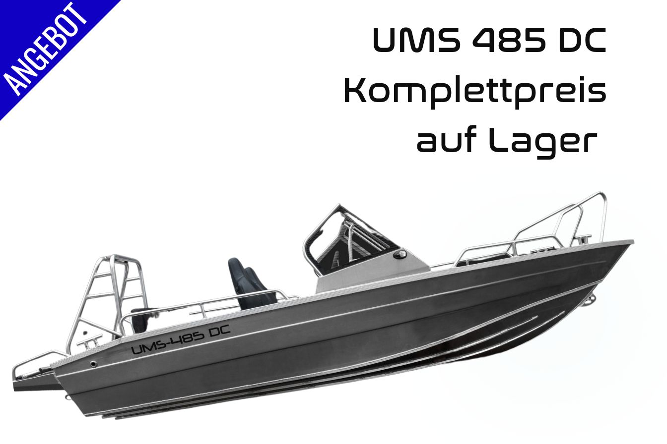 UMS 485 DС it is a light and comfortable boat with a spacious cockpit. With maximum protection of the driver and passengers on the consoles from the weather and wind, in the bow cockpit left enough operational space for fishing or luggage.